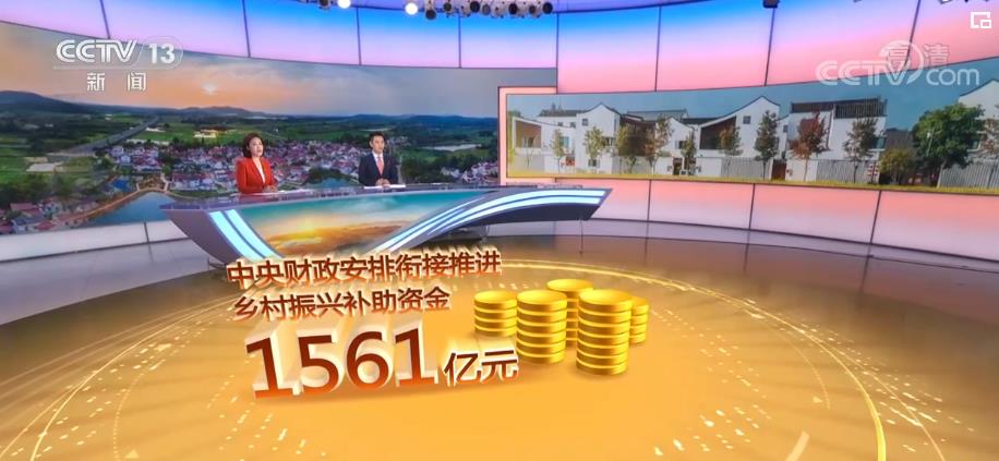 中央财政安排衔接推进乡村振兴补助资金1561亿元,新发放小额信贷400多亿元,支持超过120万脱贫户发展产业;中央层面33项衔接政策已全部出台,给予160个国家乡村振兴重点帮扶县集中支持。