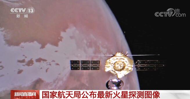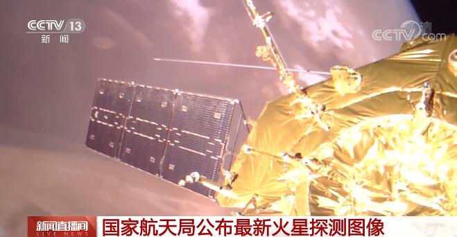 航天科技集团五院 火星探测器系统总设计师 孙泽洲:应该说目前环绕器环绕火星飞行的状态非常好。(图片中)可以看到环绕器环绕火星飞行的一个工作状态,可以清晰看到太阳翼、定向天线,也能看到一些在轨展开的天线机构。