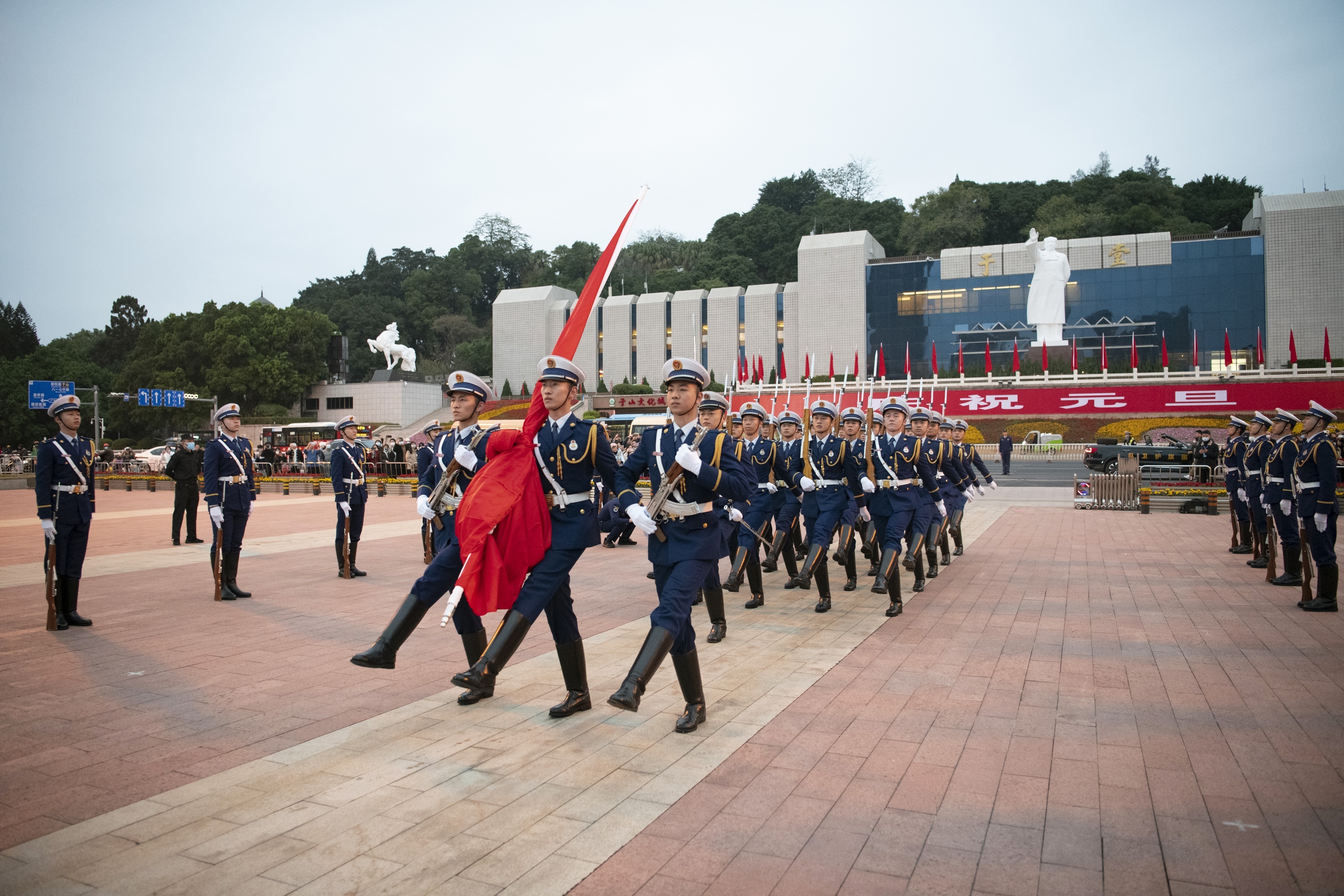 2022年1月1日清晨,福建省福州市五一广场隆重举行新年首次升旗仪式,已连续31年“零失误”圆满完成升降旗任务的鼓楼区三坊七巷消防救援站(福州市五一广场国旗护卫队)指战员,再一次同来自全市各地的广大人民群众共同见证五星红旗冉冉升起的神圣时刻。