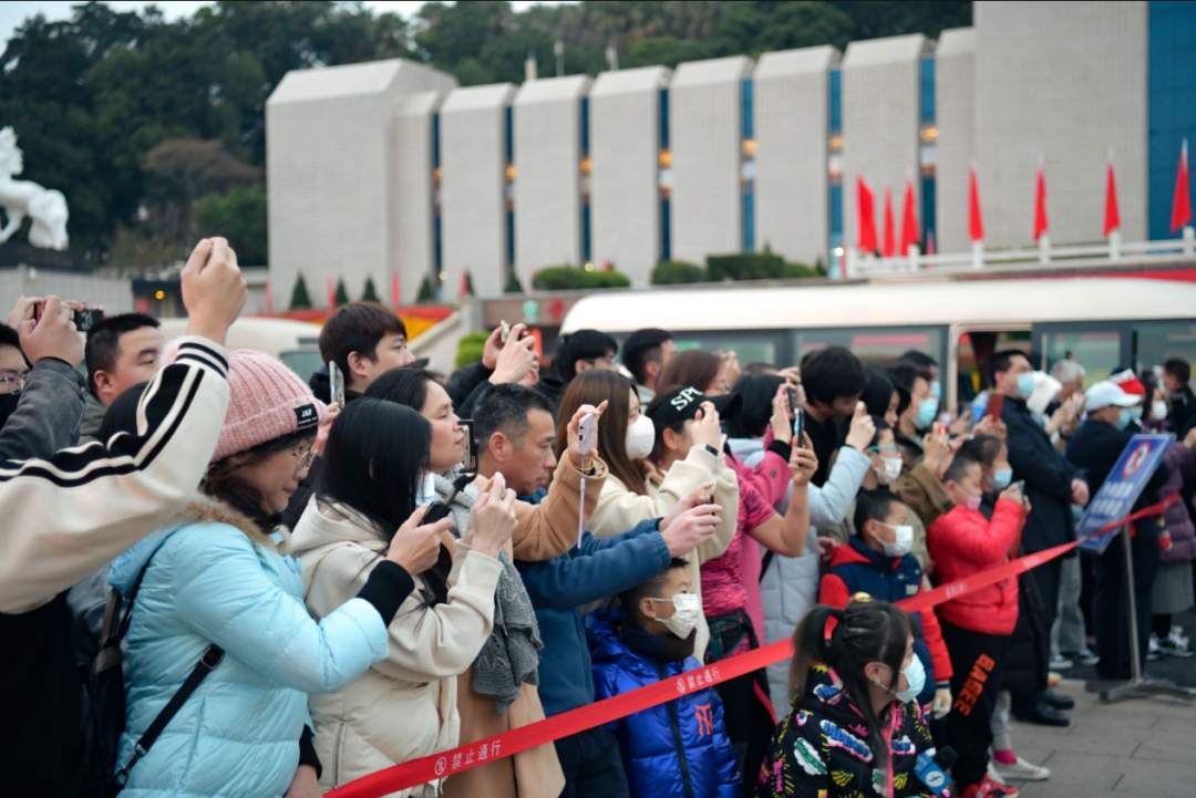 清晨6点,天还没有亮,户外温度不到10℃。自发前来的广大市民挥舞着手中的小红旗,不时地跺跺脚、搓搓手,在福州五一广场周围静静有序地等待着。