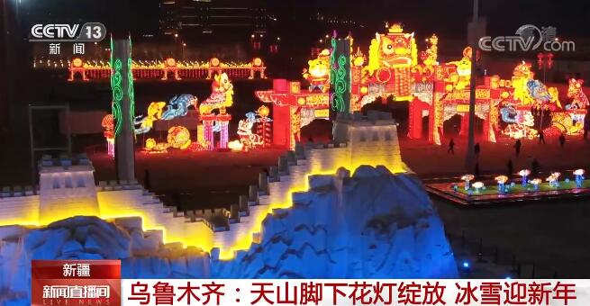 总台记者 刘菲:这里是新疆国际会展中心,随着夜幕降临,在千变万化的灯光衬托之下,形态各异的花灯以及我身后丝绸之路、万里长城造型的仿雪雕的灯展依次亮起,虽然现在室外的温度在零下10多摄氏度,但却不能阻挡人们来到这里感受浓浓的新年氛围。