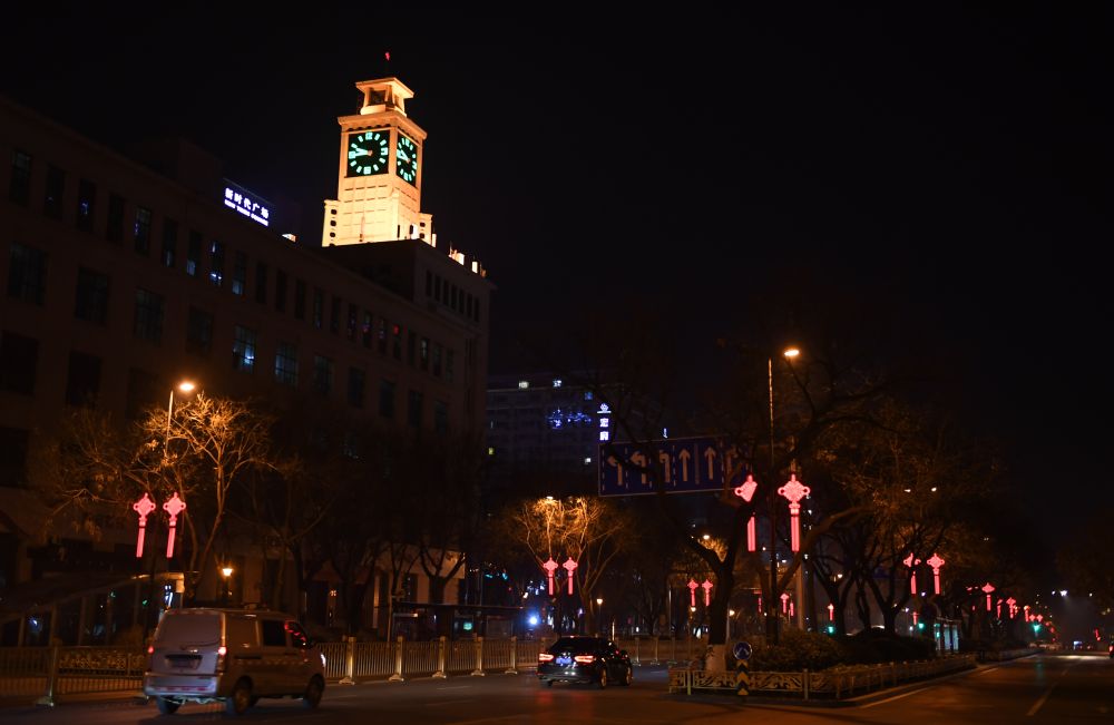 塔钟之下,一辆满载抗疫物资的货车,向着长安路方向疾驰而去。马路对面,一辆载有多名抗疫人员的大巴车与之擦肩而过,驶向城市的某个角落。
