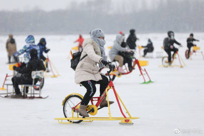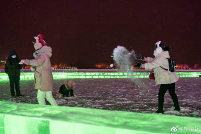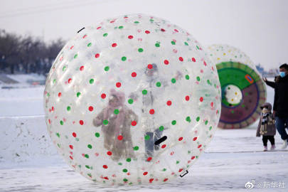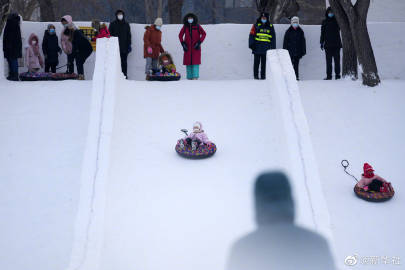 【来晒!#2022年的第一天你怎么过#】严冬时节的冰城哈尔滨市户外冰天雪地,市民和游客在赏冰乐雪中庆祝新年的到来。(王建威 张涛 谢剑飞)