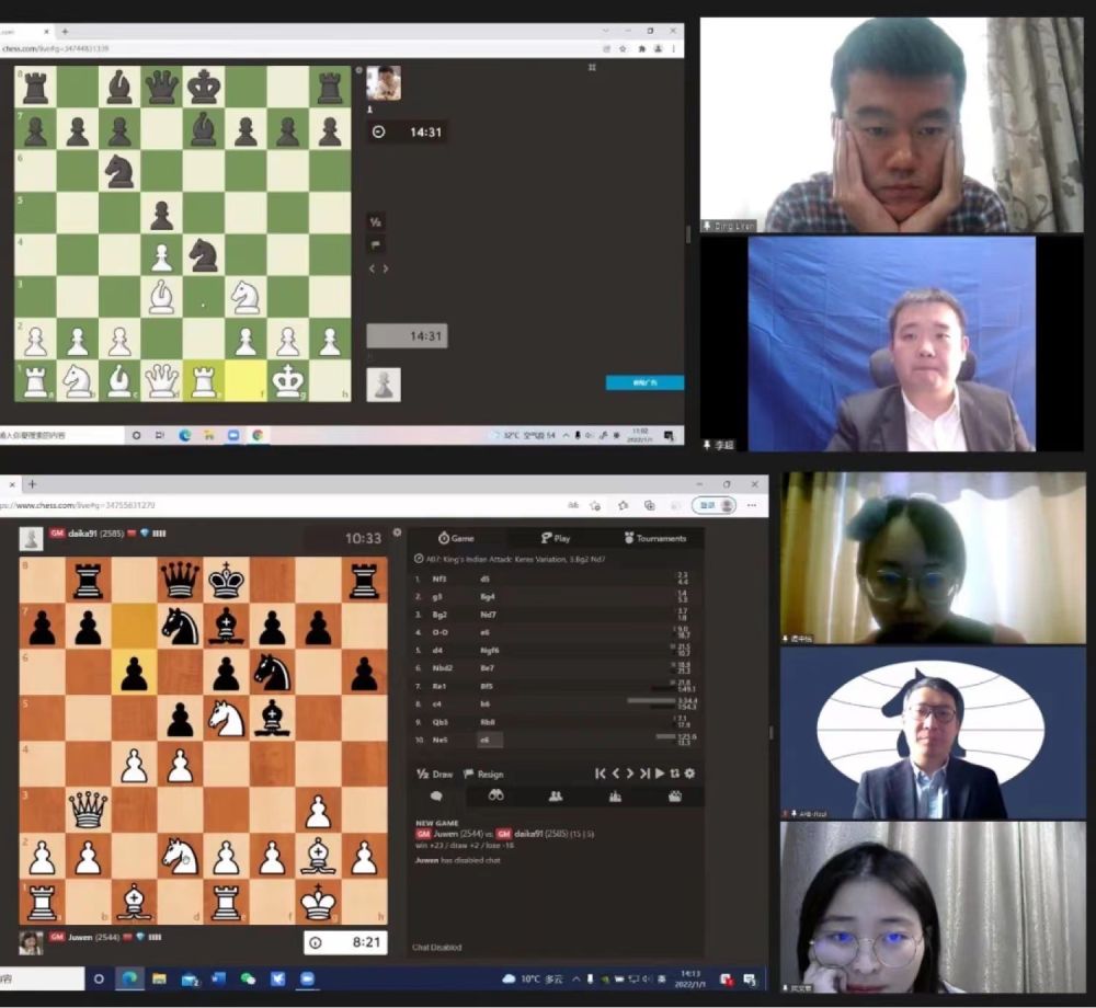 新华社宁波1月1日电 2022年第一天,“鄞州杯”中国国际象棋电视快棋赛拉开战幕,丁立人、居文君等十位国际象棋精英棋手通过chess.com平台网络对弈。