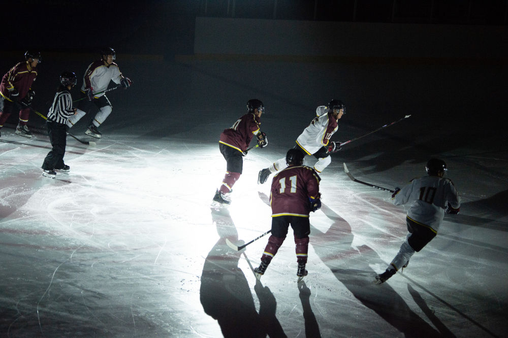 2021年10月26日,在首都青少年迎冬奥倒计时100天冰雪嘉年华开幕式上,运动员向观众展示冰球项目。新华社记者 陈钟昊 摄