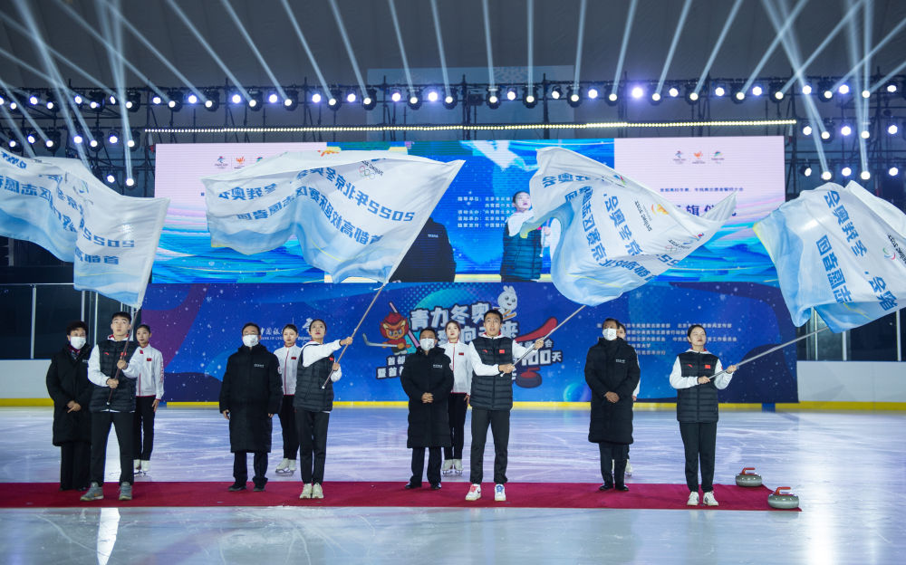 这是2021年10月26日拍摄的北京冬奥会、冬残奥会三个赛区志愿者团队及城市志愿者团队授旗仪式。新华社记者 陈钟昊 摄