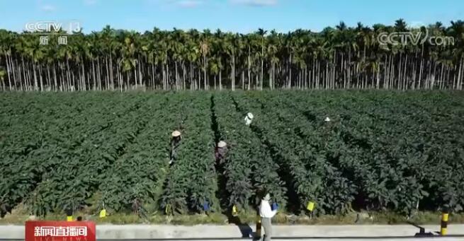 总台记者 许楚涵:我身后这片菜地叫作三亚坡田洋万亩瓜菜种植基地,这是海南省最大的冬季瓜菜种植基地之一,面积12000多亩。这里种植有茄子、豇豆、冬瓜等很多老百姓的餐桌菜。现在已经进入上市的高峰期,每天产出量有近千吨。可以看到我身旁这些长型的茄子,它们个头不小,光泽度也很高。这里的土壤保水能力较强,产出的茄子耐储运,运往北方市场之后仍然可以保持新鲜的口感。
