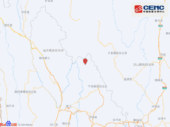 云南丽江市宁蒗县附近发生5.1级左右地震