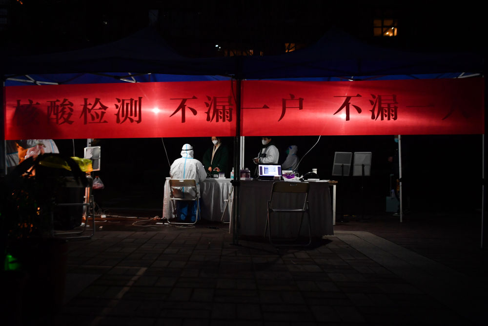 ↑12月21日,市民在西安市柏树林街道三学街社区核酸检测点排队等待核酸检测。当日,西安全面展开新一轮全员核酸检测。
