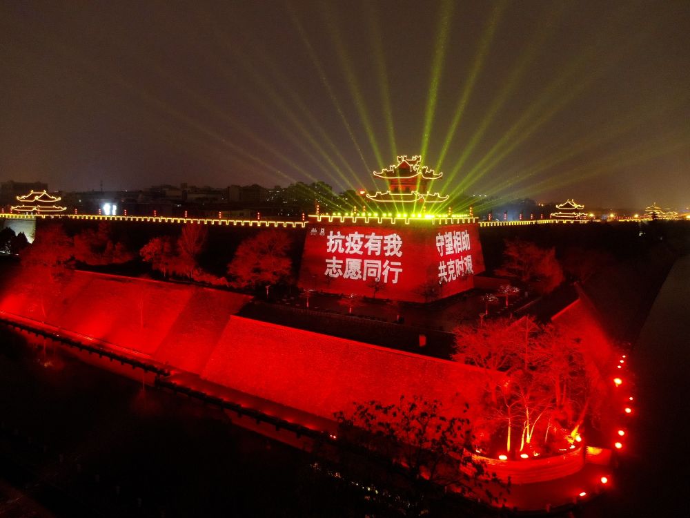 ↑12月25日拍摄的为抗击疫情加油鼓劲的夜景灯光(无人机照片)。