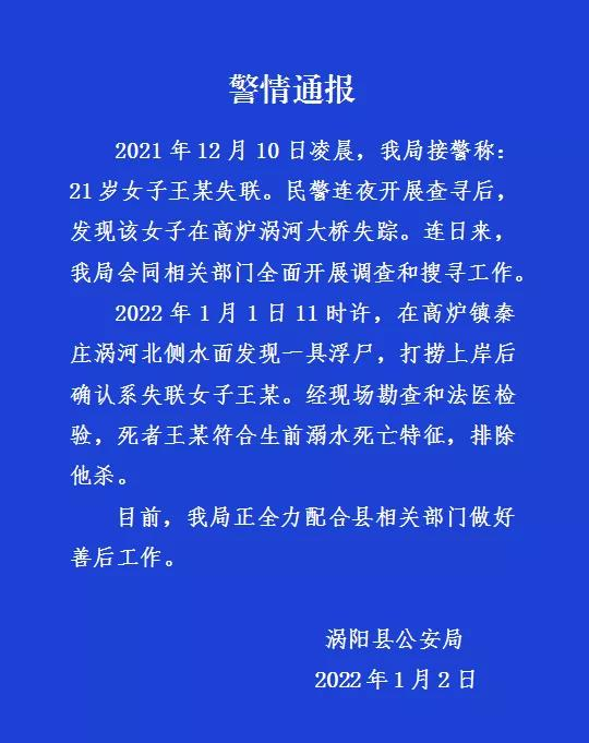 ·21岁孕妇失联24天,安徽亳州涡阳警方:符合生前溺水死亡特征。