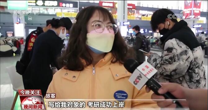 旅客 李强兵:我给她写的就是疫情早点过去,以后都能在一起吧,我是在石家庄上大学。