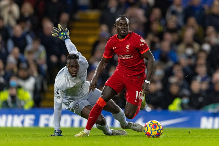 1月2日,利物浦队球员马内(右)晃开切尔西队门将门迪准备射门。新华社发