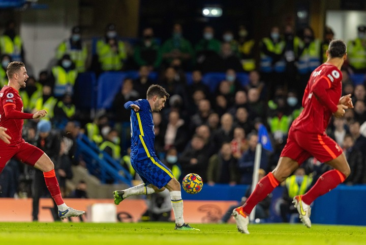 逐渐稳住阵脚的切尔西在第42分钟扳回一城。在队友边路开出的任意球被利物浦门将击出后,站在禁区弧顶的科瓦契奇原地起脚凌空撩射踢出一记世界波,球击中门柱后入网。4分钟之后普利西奇禁区内抽射破门,主队在半场结束前扳平比分。