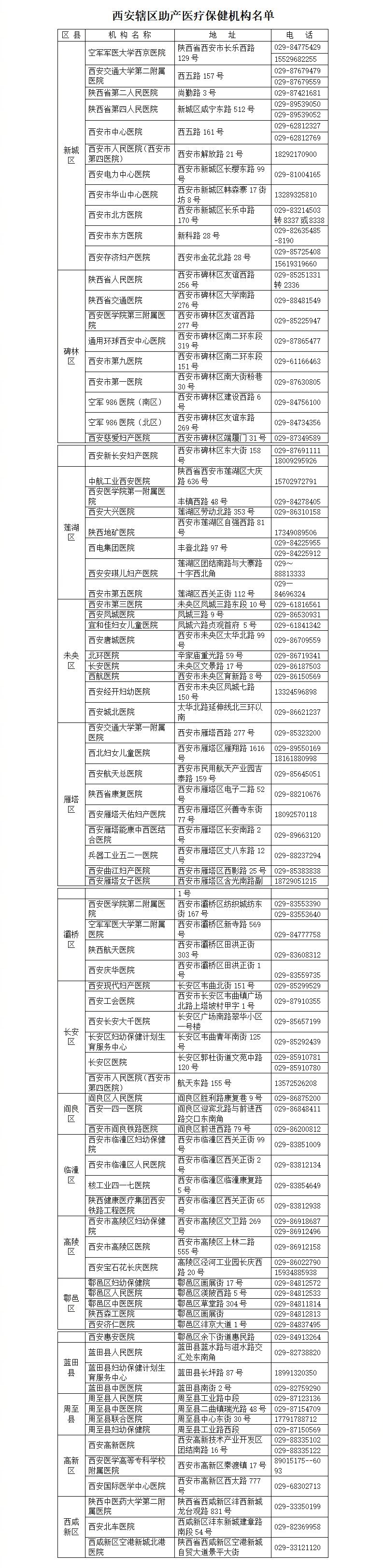 近期陕西省卫生健康委整理发布了西安辖区助产医疗保健机构名单(见下表),其他地市助产医疗保健机构名单由当地卫生健康部门自行发布。如有诊疗需求,请前往各助产医疗机构就诊。