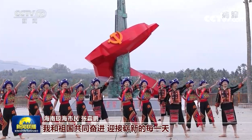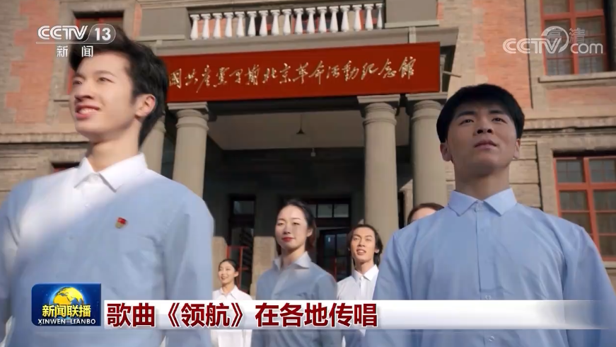 在湖北武汉、在福建宁德下党乡、在海南琼海椰子寨村,当地干部群众、院校师生自发传唱歌曲《领航》,用歌声传达对党和国家的热爱。