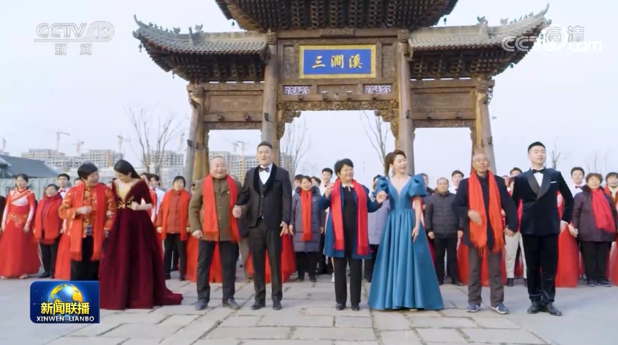 在山东济南章丘三涧溪村,由当地村民与高校师生共同组成的百人合唱团,倾情唱响《领航》,用歌声致敬党、祝福祖国。