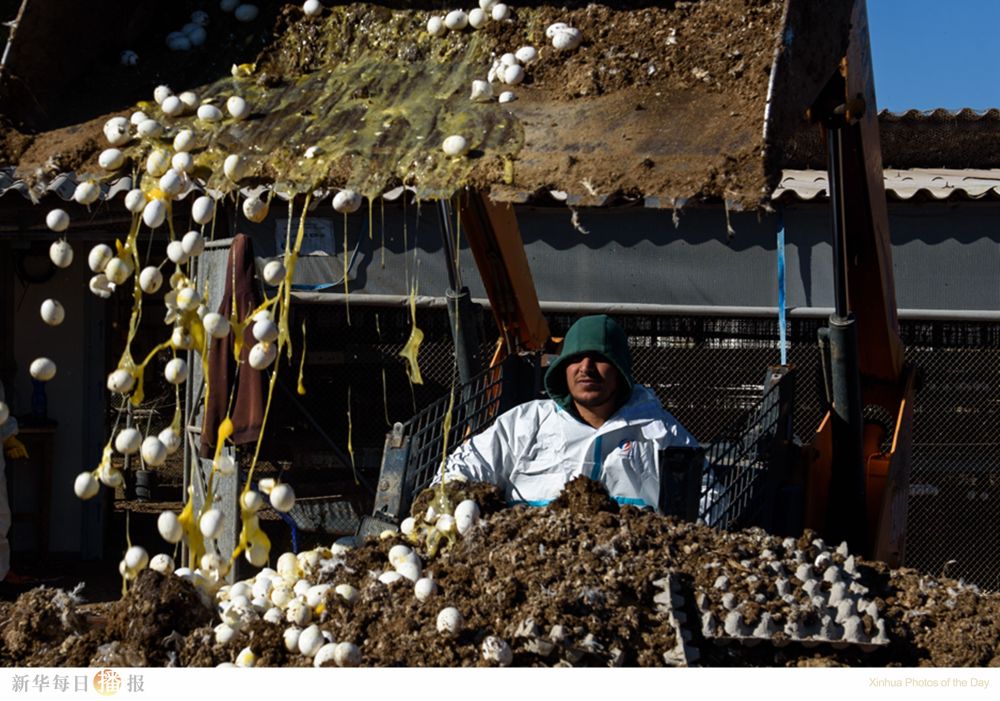 1月3日,工作人员在以色列马尔加利奥特的农场销毁鸡蛋。以色列每年都会发生禽流感,但今年情况比往年严重得多。在以色列北部以黎边界的胡拉谷地,禽流感疫情已导致2000多只野鹤死亡。以色列农业部要求受疫情影响的养鸡场暂停向市场供应鸡蛋。新华社/基尼图片社