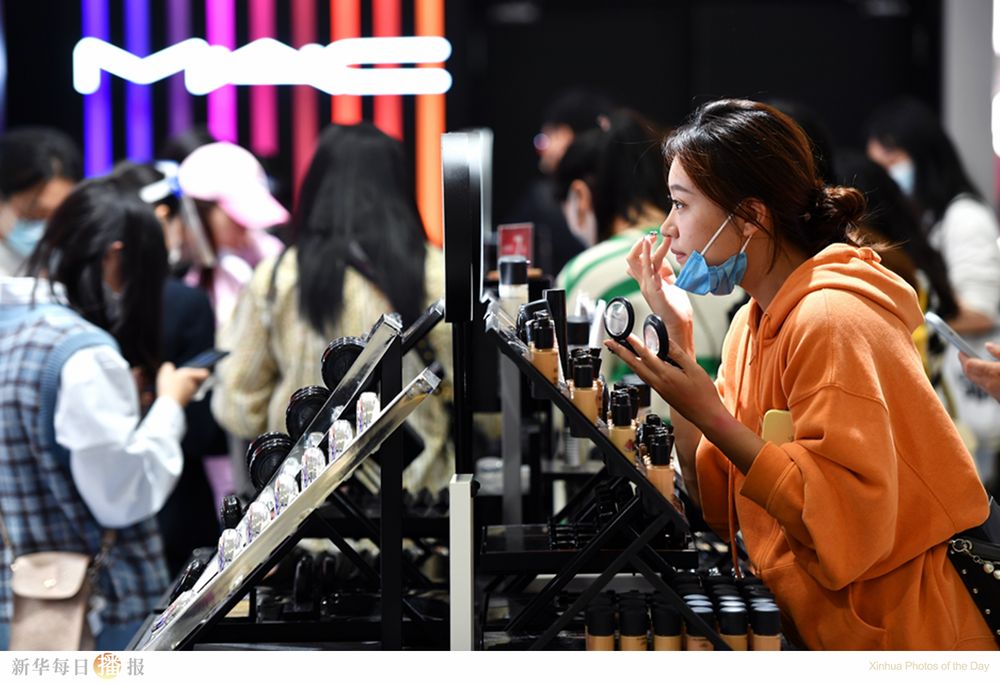 1月3日,顾客在海南省海口市日月广场免税店选购化妆品。据海南省商务厅统计,2021年海南离岛免税店总销售额突破600亿元。目前,海南离岛免税经营主体共5家,离岛免税店已增至10家,免税店经营面积达22万平方米。新华社记者 郭程 摄