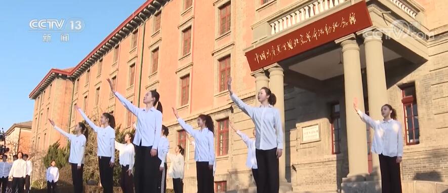 在新年到来之际,北京舞蹈学院学生来到北大红楼,唱响歌曲《领航》,重温了党一百年来的风雨征途。