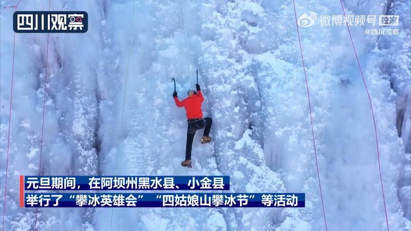 近日,四川阿坝,达古冰川、四姑娘山等地吸引大批游客前往。攀爬瀑布是什么体验?详情>>>