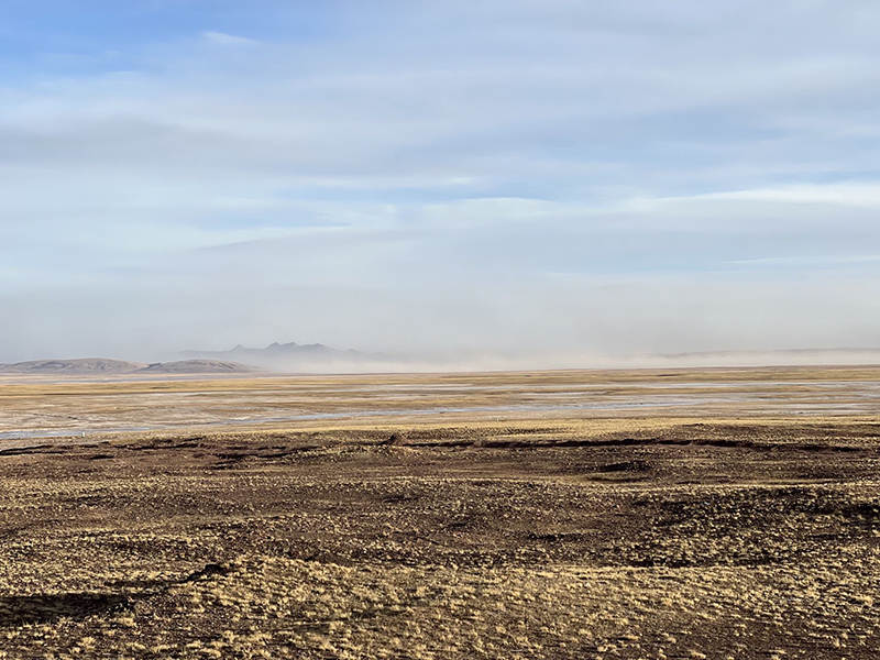 匆匆道别,继续上路。绵延的青藏公路,这时变得颠簸起来。地面下似乎有巨大的力量将路面拱起,道路起起伏伏,坐车有如乘船。