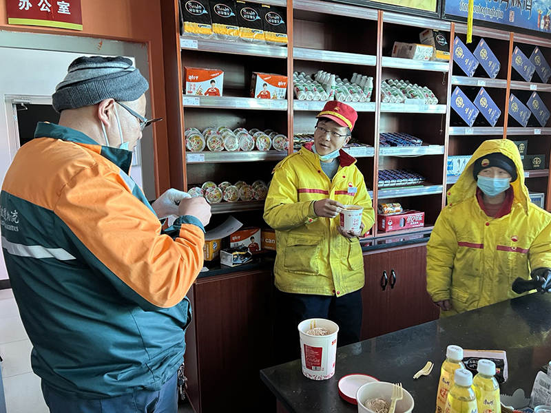 百感交集中,已过晌午时分,邮车开到了五道梁。葛军拿起电话:“准备好饭了吗?”我内心暗喜,在这片无人区,跟着“老司机”就不担心饿着。葛军将邮递车径直开进中国石油五道梁加油站。迎面走来一个小哥,中等个头,瘦脸尖下巴,穿着明黄色的工作服。