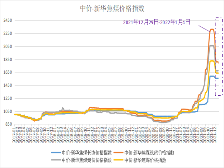 新华财经北京1月5日电(郑豪)本期(2021年12月29日-2022年1月4日)焦煤市场稳中偏弱,中价·新华焦煤价格指数小幅下跌。