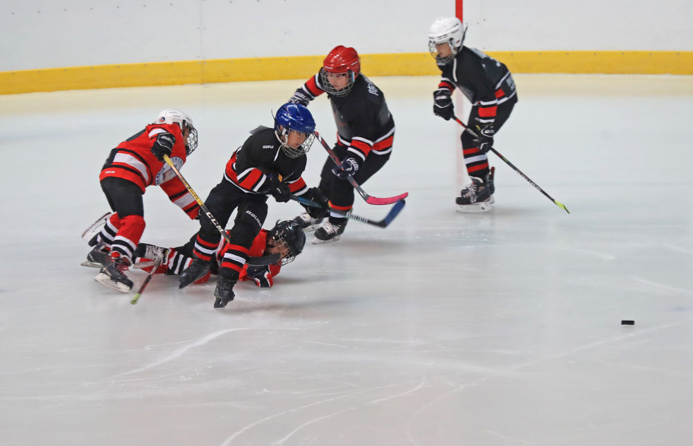 1月5日,青少年球员在开幕式上进行冰球表演赛。新华社记者 杨青 摄