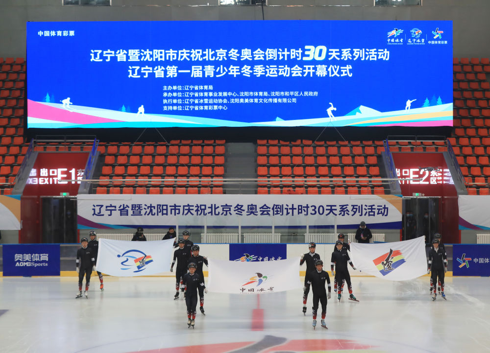 新华网沈阳1月5日电(记者张逸飞)“中国体育彩票”辽宁省暨沈阳市庆祝北京冬奥会倒计时30天系列活动、辽宁省第一届青少年冬季运动会开幕仪式,5日在沈阳市和平区全民健身中心冰场火热举行。