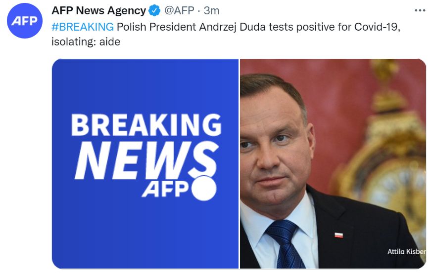 波兰总统新冠检测呈阳性