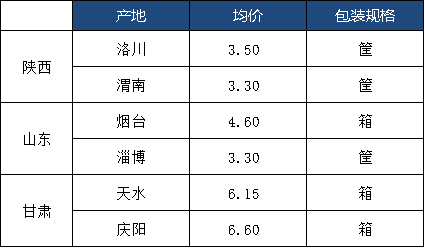 表1 运城产区各规格品均价(2021.12.29-2022.1.4)(单位:元/斤)