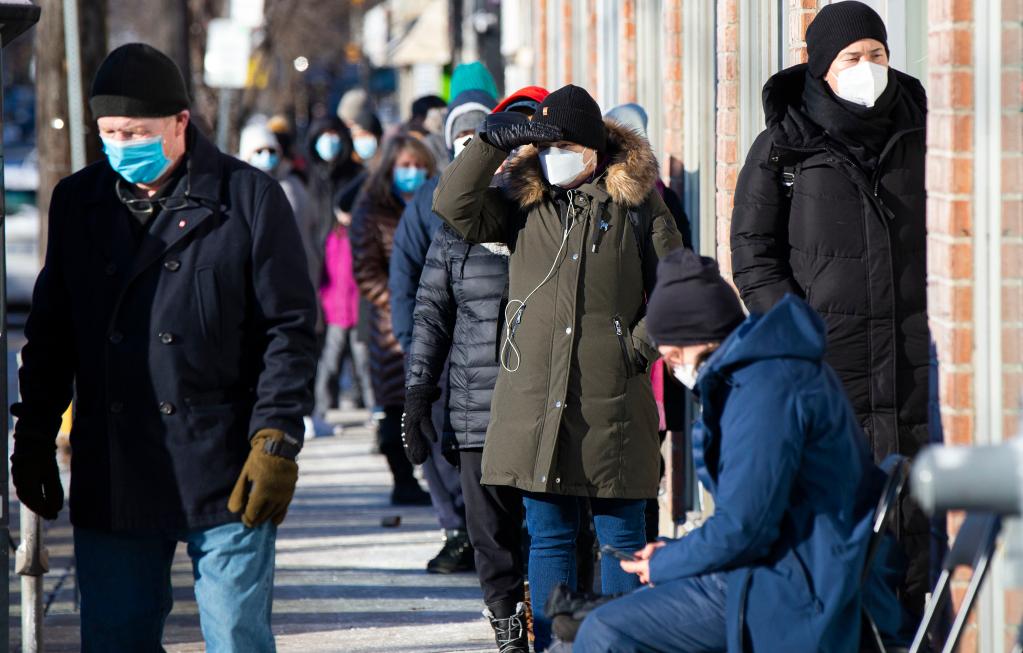 1月3日,人们在加拿大多伦多一处新冠疫苗接种点外排队。据加拿大电视台报道,截至3日晚,加拿大累计新冠确诊病例达2302695例,累计死亡病例30393例。(新华社发,邹峥摄)
