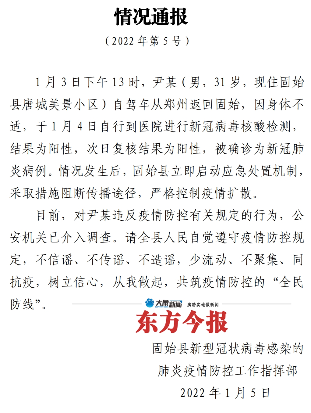 河南固始确诊病例违反疫情防控规定,公安机关已介入调查