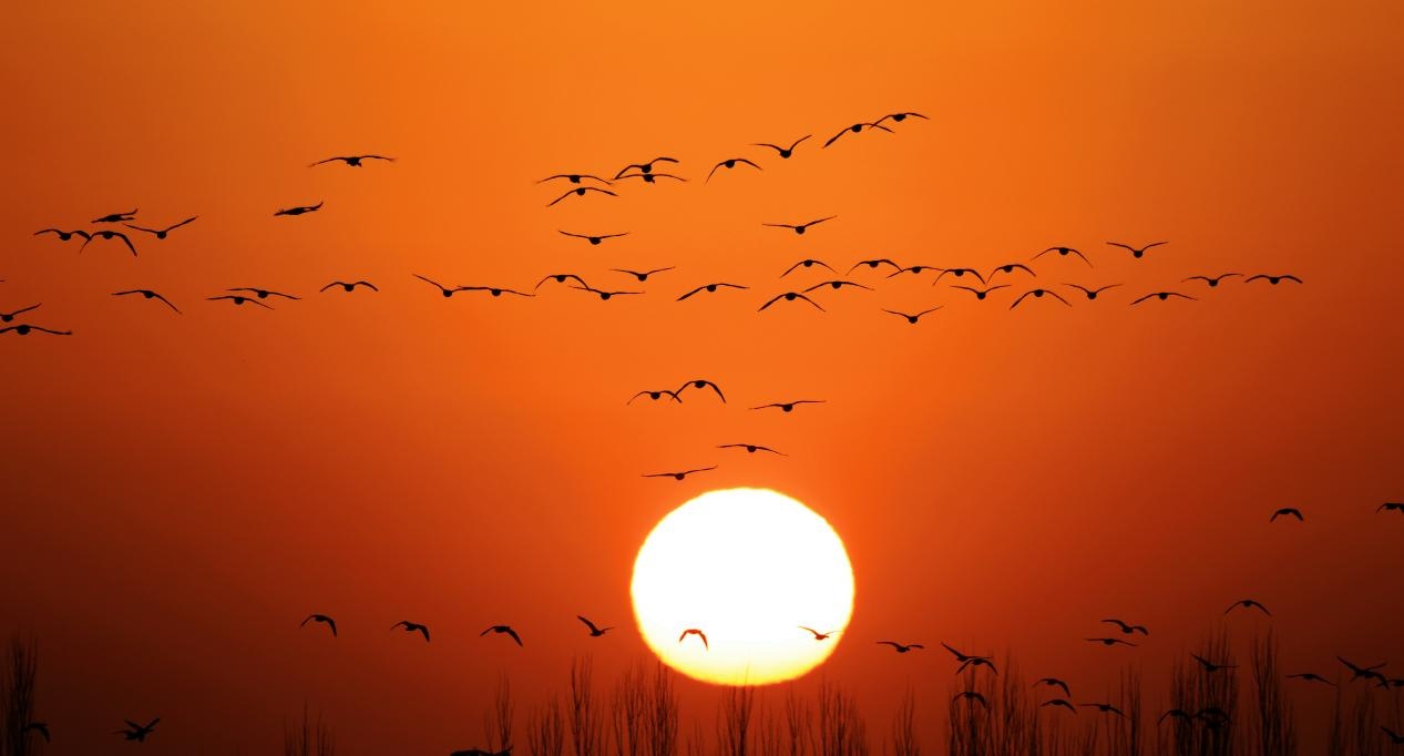2021年2月10日,成群的候鸟在天空翱翔。陈小组摄
