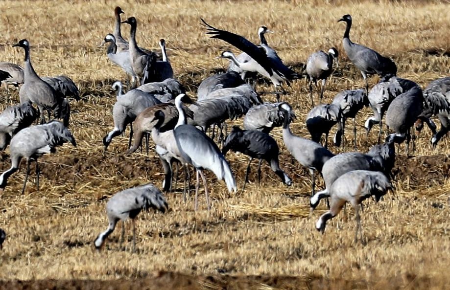 2019年12月27日,在银河湾村拍摄到的灰鹤与豆雁。陈小组摄