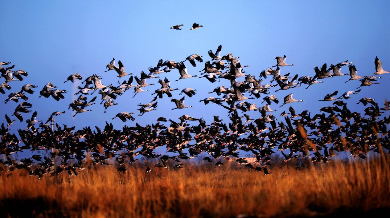 宁夏的美景,不计其数。有灯红酒绿下的高楼大厦,有历史怀旧的古建筑,也有大漠孤烟长河落日的壮丽景色,都能让我们感知宁夏这座城市的底蕴。然而,在宁夏石嘴山市惠农区银河湾村有一处自然的生态长廊,每年秋末冬初,这里呈现百鸟争鸣、万羽竞飞的候鸟迁徙景观,各方游客都慕名而来。