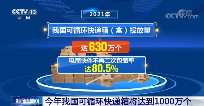 央视网消息:国家邮政局今天(1月6日)发布了邮政快递业绿色发展的情况。去年我国可循环快递箱(盒)投放量达630万个,今年年底可循环快递箱将达到1000万个。