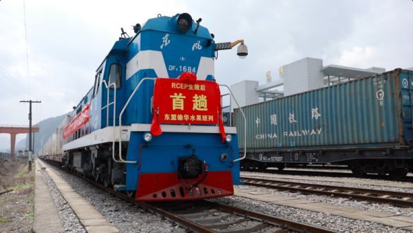 记者从中国铁路南宁局集团有限公司获悉,1月6日12时56分,24508次东盟水果班列抵达广西凭祥火车站。这是区域全面经济伙伴关系协定(RCEP)生效后,我国首趟从东盟国家进口的水果班列。