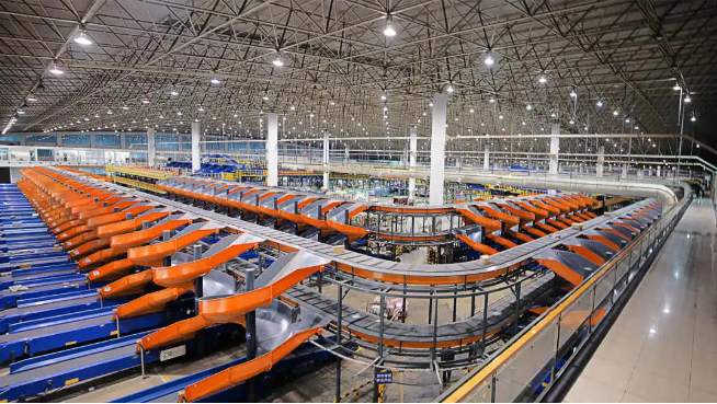 图为中国邮政自动化分拣系统。中国邮政集团公司供图