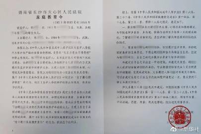 【#湖南长沙对一失职监护人发出《家庭教育令》#】家庭教育促进法于1月1日实施。6日,湖南省长沙市天心区人民法院审理了一起抚养权变更纠纷,并针对监护人监护失职的情况发出一份《家庭教育令》。据湖南省长沙市天心区人民法院介绍,此份《家庭教育令》是根据家庭教育促进法所出台的一项具体的创新举措,主要意义就是规范家长正确地履行抚养孩子行为,在全社会营造促进未成年人健康成长良好氛围。详情请戳网页链接(记者谢樱、刘良恒)