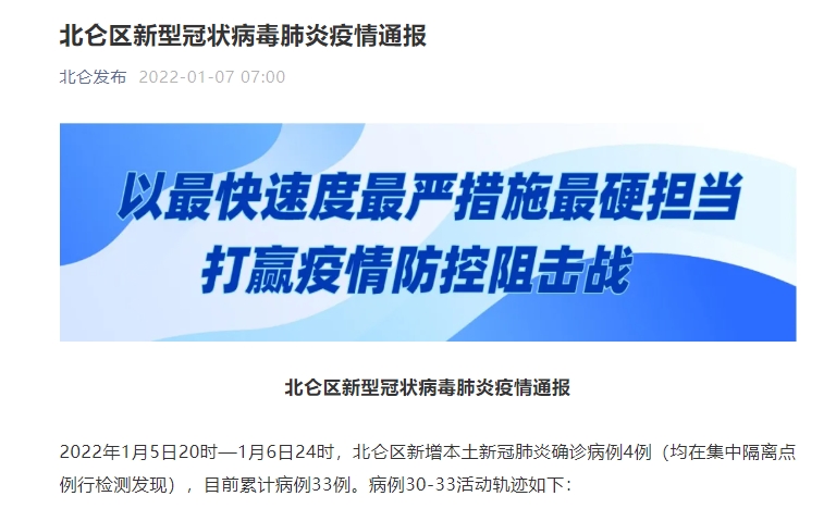 2022年1月5日20时—1月6日24时,北仑区新增本土新冠肺炎确诊病例4例(均在集中隔离点例行检测发现),目前累计病例33例。病例30-33活动轨迹如下: