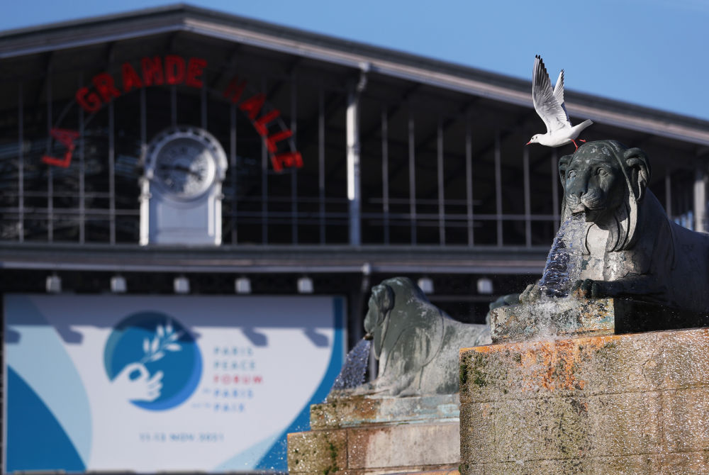 ↑这是2021年11月11日在法国巴黎拍摄的巴黎和平论坛会场外景。