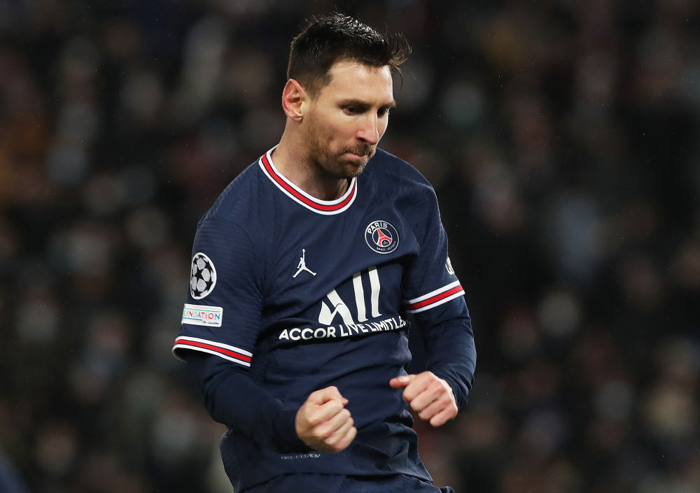 ↑2021年12月7日,巴黎圣日耳曼队球员梅西在罚入点球后庆祝。当日,在2021-2022赛季欧洲足球冠军联赛小组赛A组第六轮比赛中,法甲巴黎圣日耳曼队主场以4比1战胜比甲布鲁日队。