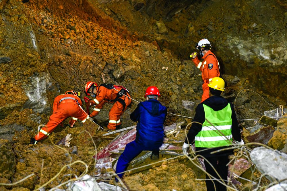 夜间搜救视野较差,多部门协调增派照明车和照明灯组,并使用系留无人机在空中辅助照明,加快救援进度。其间,由于滑坡体不稳定有引发二次垮塌风险,救援被迫短暂终止,后经科学评估又继续进行。