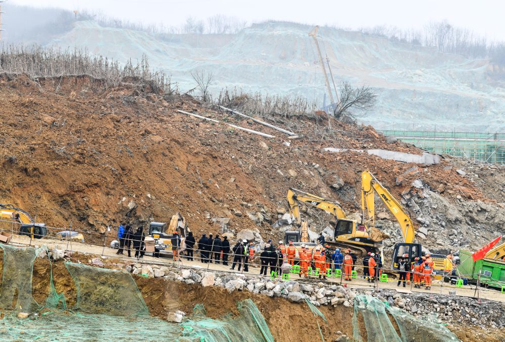 1月4日凌晨,搜救人员在山体滑坡现场展开搜救。