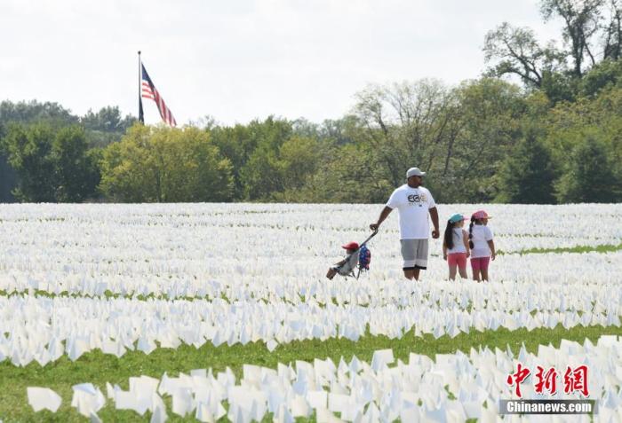 当地时间2021年9月18日,美国首都华盛顿国家广场上插着数十万白色旗帜,悼念新冠逝者。中新社记者 陈孟统 摄
