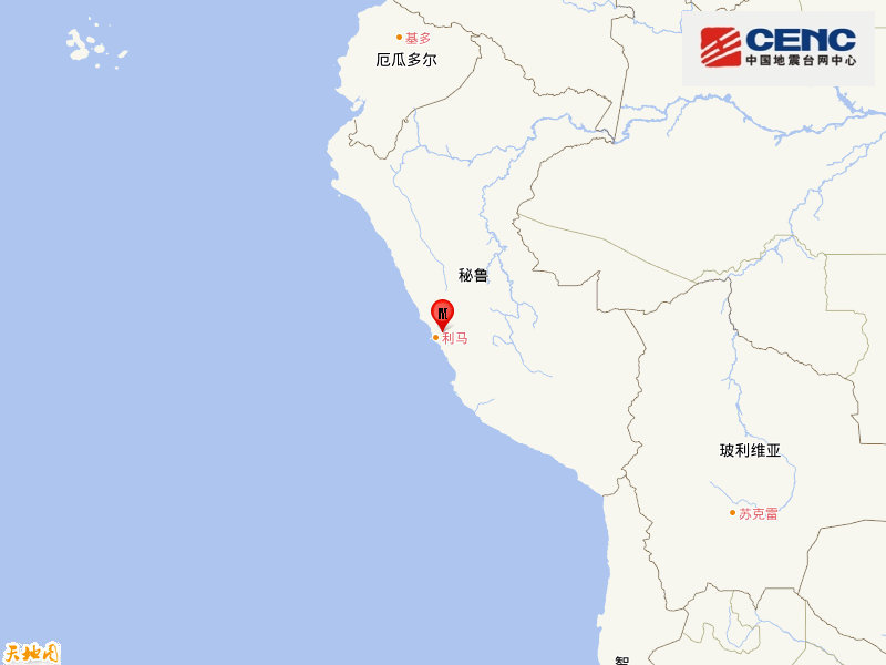 中国地震台网正式测定:01月07日18时27分在秘鲁(南纬11.90度,西经76.70度)发生5.1级地震,震源深度60千米。