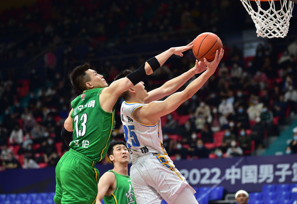 1月7日,辽宁本钢队球员郭艾伦(左)在比赛中防守北京首钢队球员田宇翔。新华社记者林宏摄