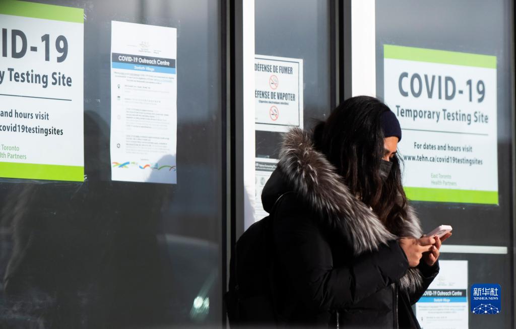 1月8日,一名戴口罩的女子在加拿大安大略省多伦多一处新冠病毒检测点外等候。